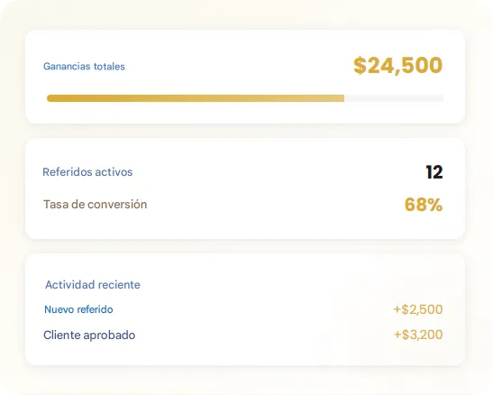 Gana comisiones mientras ayudas a dueños de negocios a obtener financiamiento real — sin estrés ni complicaciones.